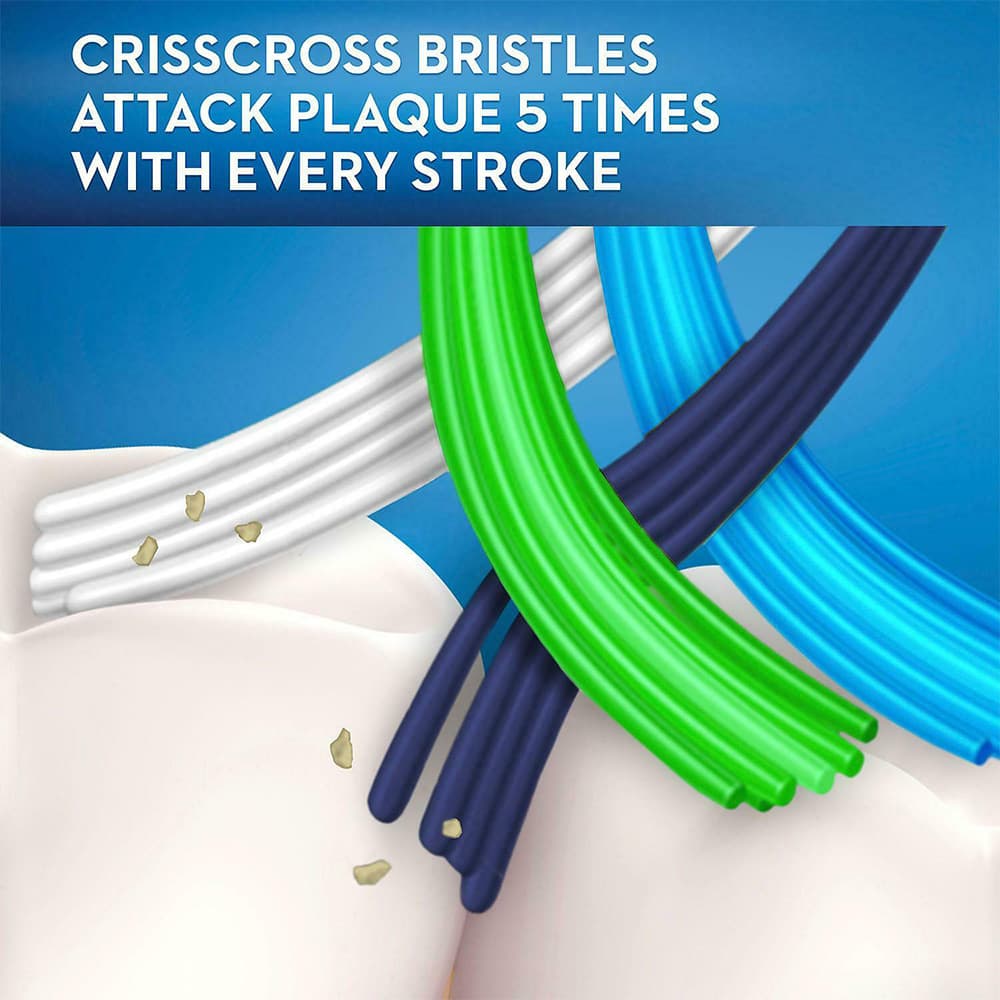 - Công nghệ CrissCross Bristle được chứng minh lâm sàng để làm sạch tốt hơn bàn chải đánh răng phẳng thông thường.