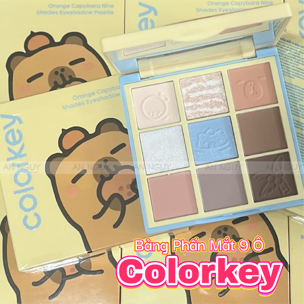 - Bảng Phấn Mắt 9 Ô Colorkey Orange Capybara Nine Shades Eyeshadow Palette với thiết kế vỏ hộp đáng yêu lấy cảm hứng từ chú Capybara cam.