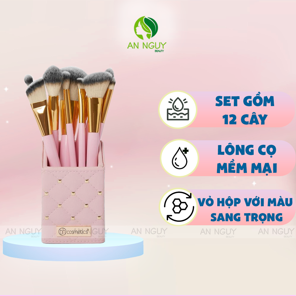 Set Cọ BH Cosmetic Pink Studded Elegance 12 Piecegồm 12 cây đáng yêu và ngọt ngào. Đi kèm với sản phẩm là lọ đựng cọ được bọc da cùng đinh tán “chanh xả”. Không những “đồng bộ” hoàn hảo mà còn giúp cho bạn có thể bảo quản được các sản phẩm cọ tốt hơn nữa đó.