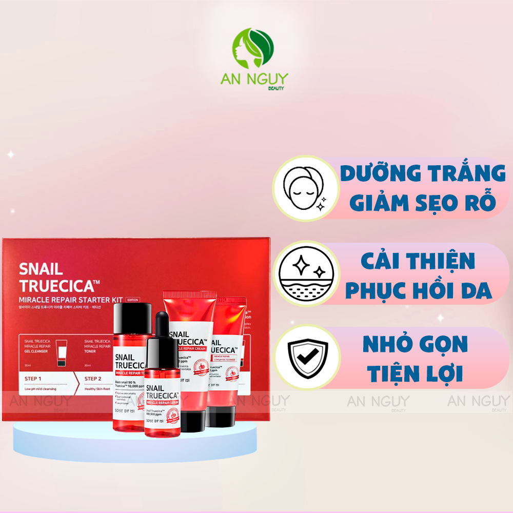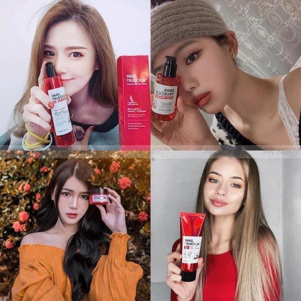 #Tinh Chất Ốc Sên Phục Hồi Da, Mờ Thâm Sẹo Hàn Quốc Some By Mi Snail Truecica Miracle Repair Serum là tinh chất dưỡng thuộc dòng Snail Truecica của thương hiệu Some By Mi giúp phục hồi và làm lành sẹo chứa 88% dịch nhầy ốc sên đen và công nghệ độc quyền TrueCica giúp làm lành các tổn thương trên bề mặt da,cải thiện tình trạng sẹo lõm đồng thời ngăn ngừa tình trạng da ửng đỏ do kích ứng,mụn viêm và ô nhiễm môi trường.