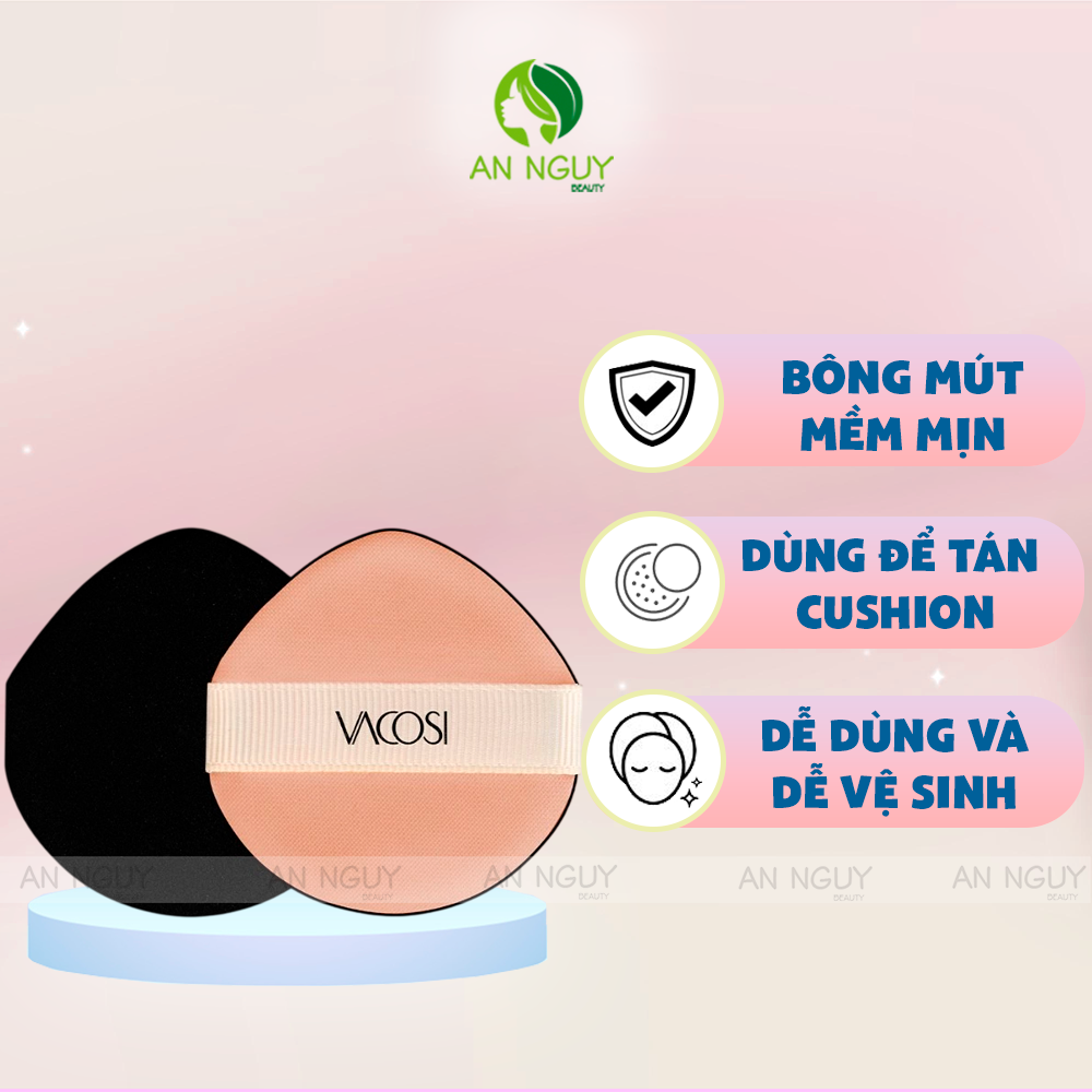 - BÔNG CUSHION VACOSI KEM NHỌN cải tiến bề mặt bông thấm kem vào da tốt hơn trong từng thao tác dặm từ mỏng đến dày, tạo nên một lớp nền chắc chắn, độ che phủ cao.