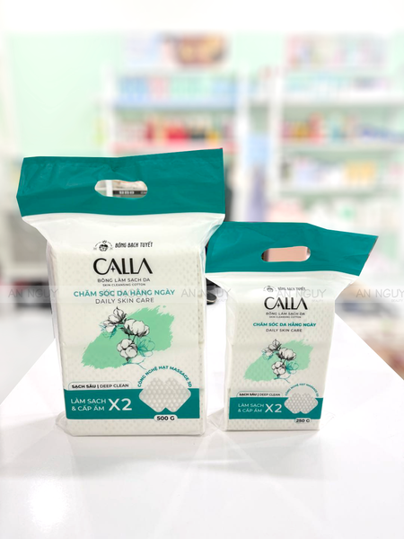 - Bông Tẩy Trang Calla Skin Cleansing Cotton với thành phần 100% bông xơ tự nhiên mềm mại, an toàn và công nghệ 3D Deep Cleansing tạo nên bề mặt nổi 3D giúp mát-xa & tăng gấp đôi hiệu quả làm sạch sâu cho bề mặt da.