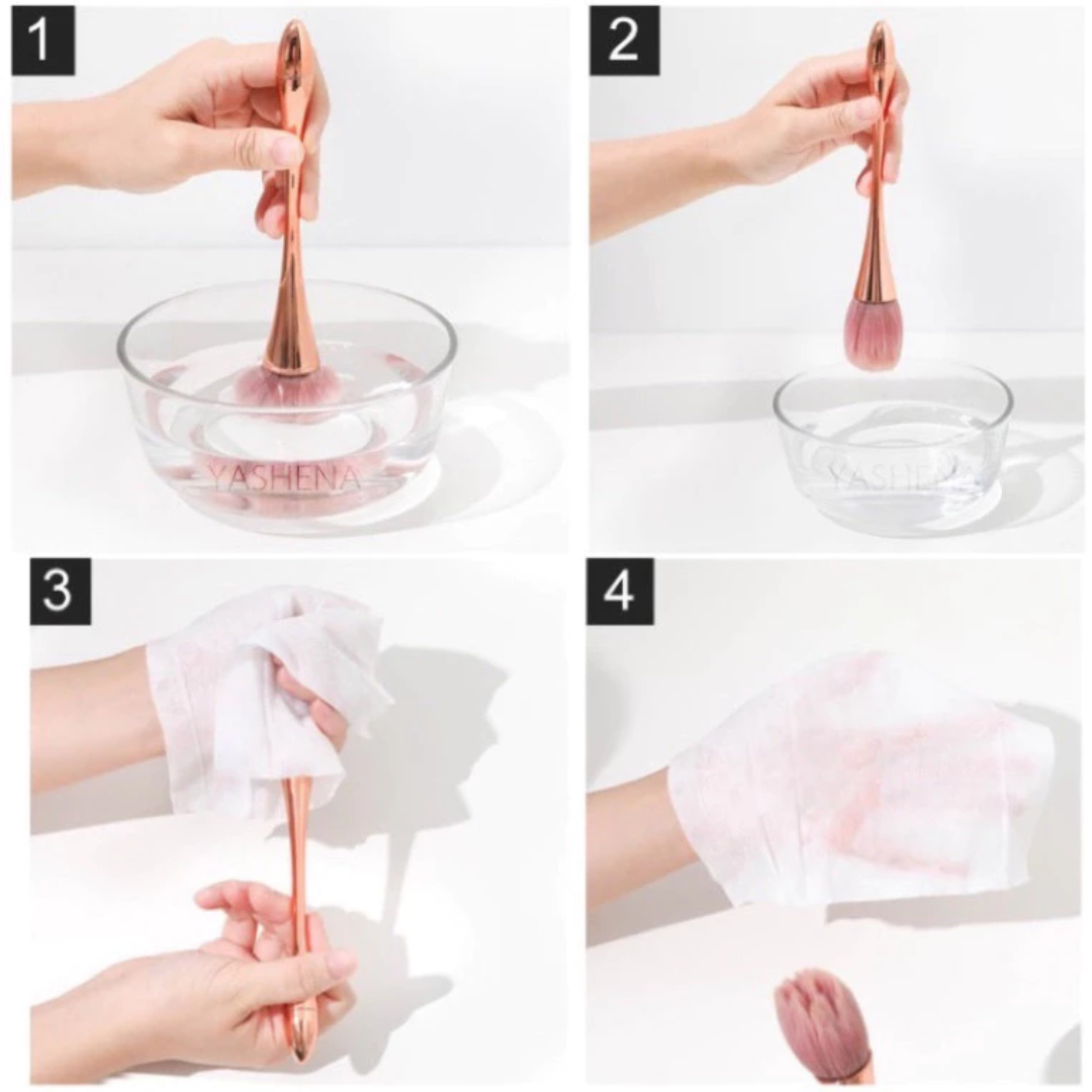 Lưu ý: Khi vệ sinh cọ, không ngâm cọ lâu trong nước sẽ làm hỏng bộ phận gắn kết cọ.