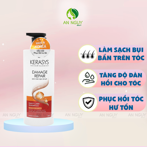 - Kerasys Damage Repair được chiết xuất từ thảo mộc và các vitamin có tác dụng nuôi dưỡng, phục hồi mái tóc bị hư tổn, đặc biệt là giữ được tóc nhuộm được bền màu.