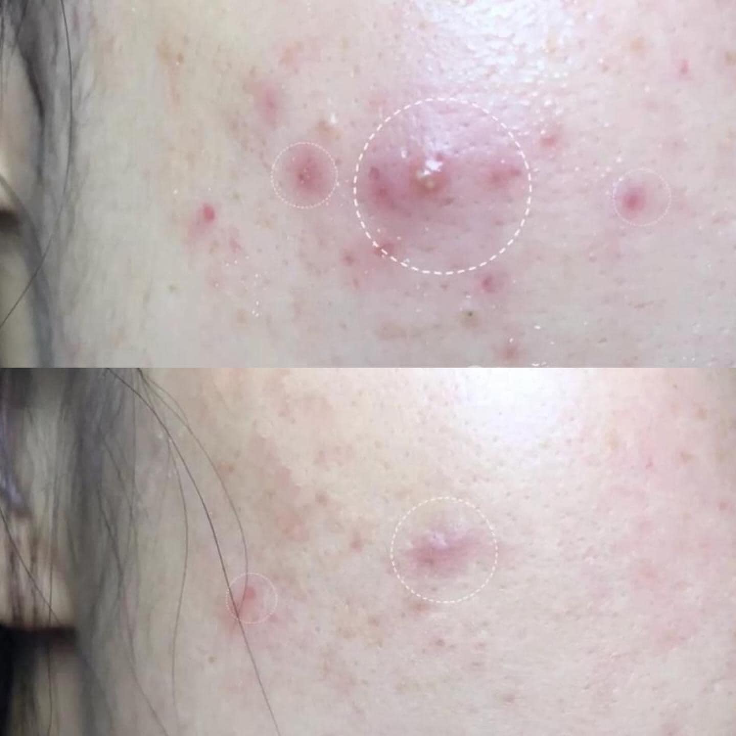 + Làm khô đầu mụn, các đốm mụn sưng, viêm sẽ xẹp hẳn, nhân mụn cũng sẽ dễ dàng lấy đi mà không để lại sẹo, thâm.