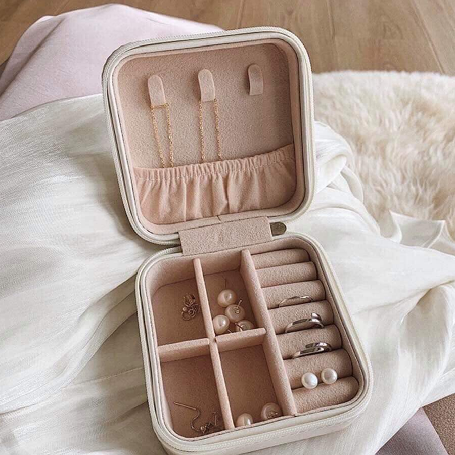 + Hộp Đựng Trang Sức Có Khóa Kéo Nhiều Màu giúp dễ dàng bảo quản và cất giữ trang sức, được chia thành nhiều ô và nhiều khe có thể chứa các đồ trang sức khác nhau, như vòng cổ, nhẫn, bông tai…
