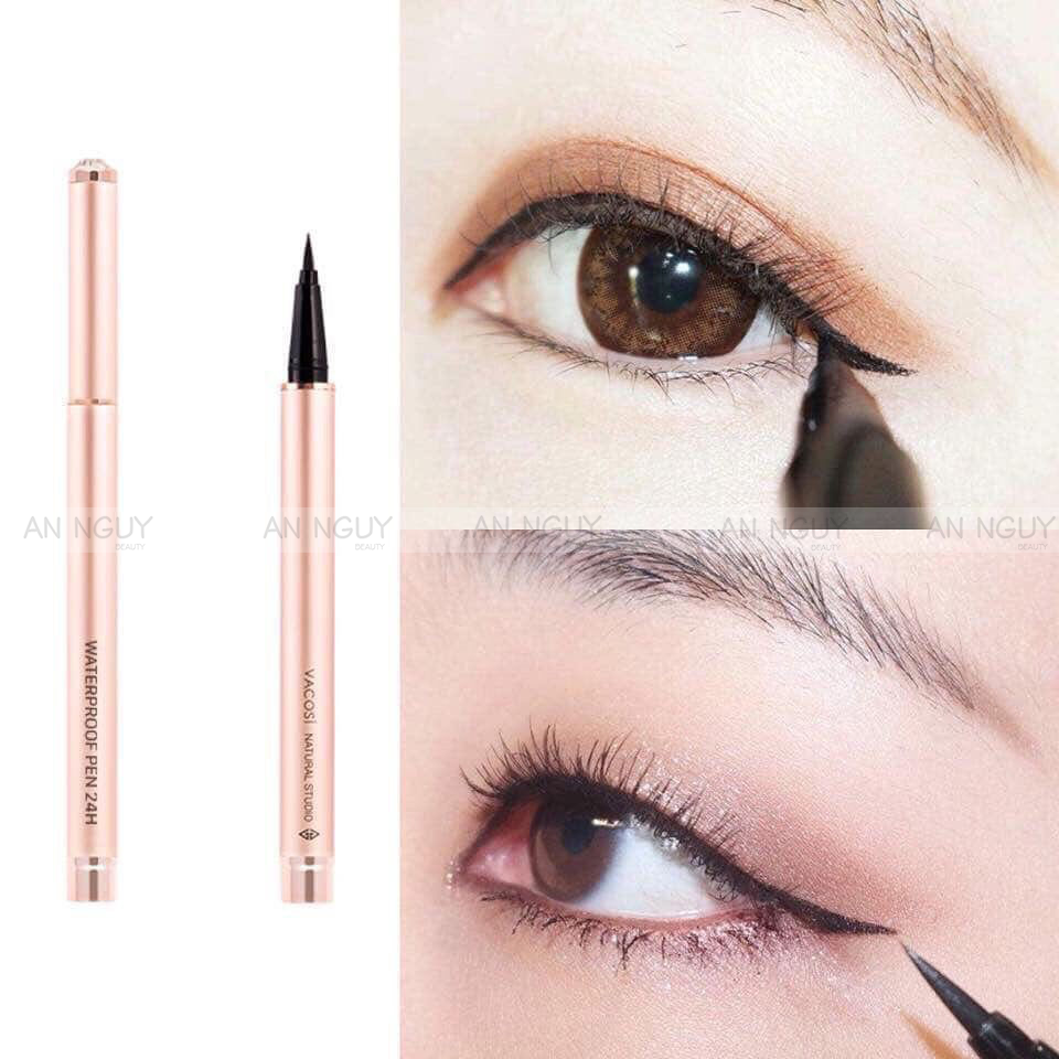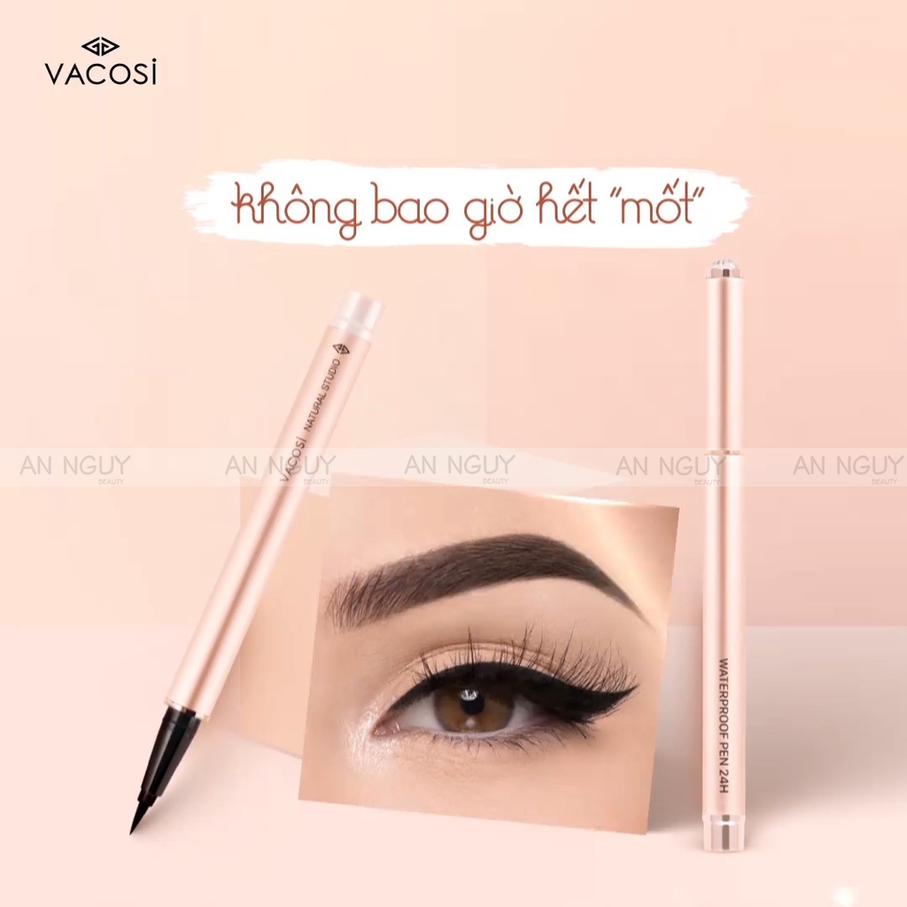 - Bút Kẻ Mắt Nước Vacosi 24h Waterproof Pen (Rose Gold) là sản phẩm kẻ mắt đến từ thương hiệu mỹ phẩm VACOSI của Hàn Quốc, với thiết kế mới mang tông màu hồng Rose Gold sang trọng, quý phái cùng chất mực đen bóng và đầu bút siêu mảnh 0.05mm vô cùng linh hoạt, giúp tạo nên đường kẻ mắt sắc sảo, chuẩn đẹp như Makeup Artist.