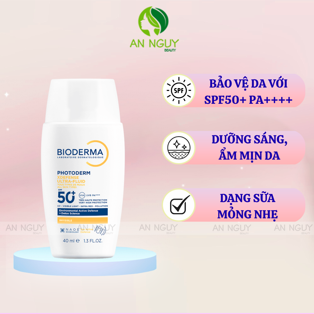 - Kem Chống Nắng Bioderma Photoderm XDefense Ultra-Fluid SPF50+ PA++++ là chống nắng phổ rộng với hoạt chất TMBA (Trimethoxybenzyl Acetylsinapate) & Bentonite giúp góp phần củng cố hàng rào sinh học của da, tăng cường khả năng khả năng thanh lọc các tác nhân oxi hóa tự nhiên giúp làn da sáng khỏe rạng rỡ.