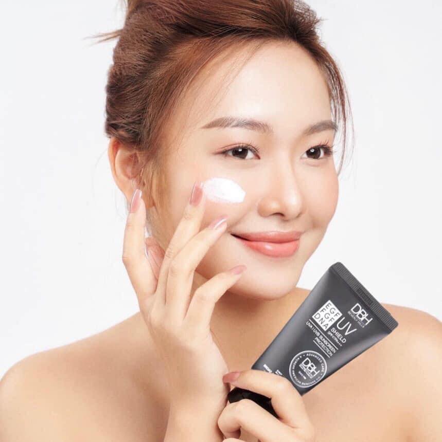 - Kem chống nắng EGF UV Shield SPF50+ PA +++ là sản phẩm có tác dụng bảo vệ hữu hiệu cho làn da không bị tổn thương do tác hại của tia UVA, UVB.