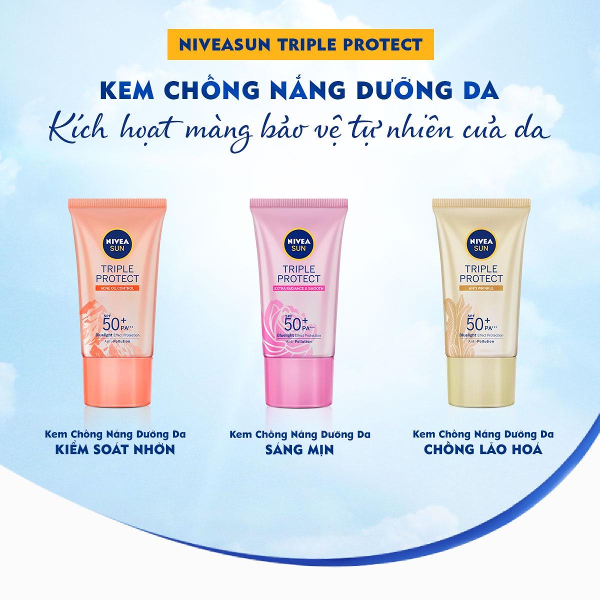 Kem Chống Nắng Nivea Ngăn Ngừa Lão Hóa Tảo Biển Triple Protect Anti Wrinkle SPF50+ PA+++ 40ml