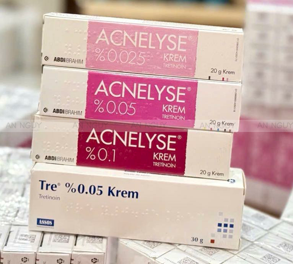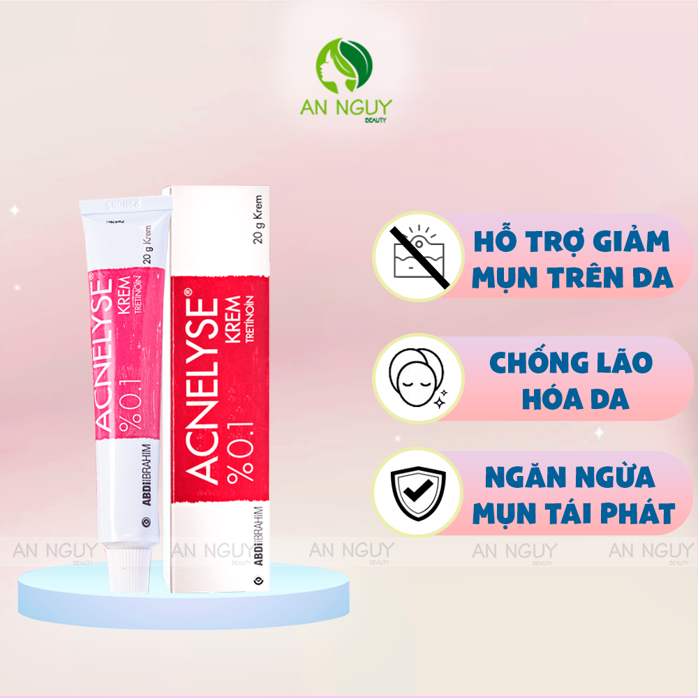 - Kem Trị Mụn Abdi Ibrahim Acnelyse Krem Tretinoin với công thức chứa Tretinoin hỗ trợ cải thiện các vấn đề về mụn trứng cá, ngăn ngừa hình thành mụn mới, kích thích tái tạo tế bào, làm mờ đốm thâm…