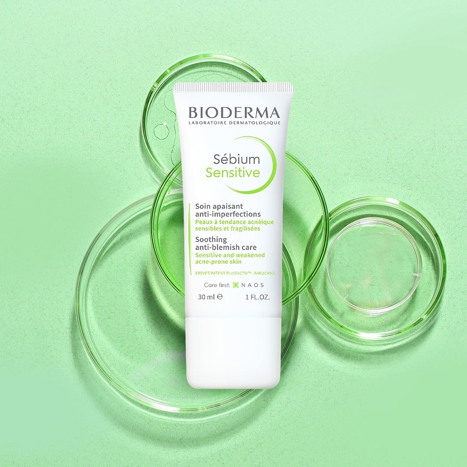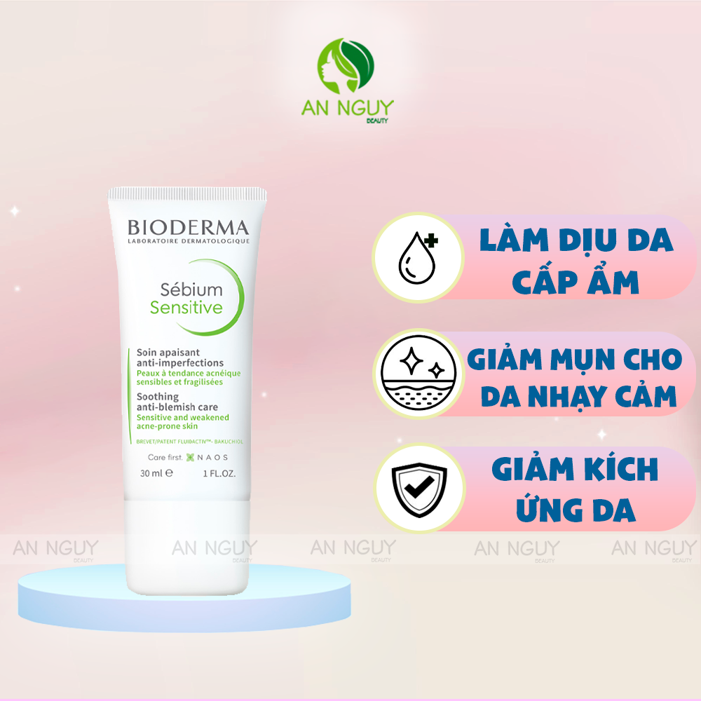 - Kem Dưỡng Ẩm Bioderma Sebium Sensitive Soothing Anti-Blemish Care là kem dưỡng ẩm làm dịu da, cấp ẩm và giảm mụn cho da nhạy cảm, dễ nổi mụn đến từ thương hiệu dược mỹ phẩm Bioderma.