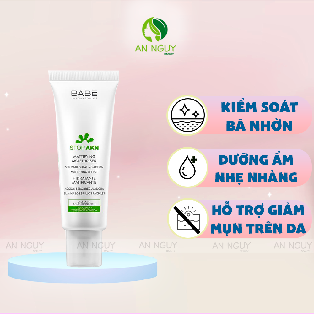 - Kem Dưỡng Babé Stop AKN Mattifying Moisturiser Cho Da Dầu Mụn là sản phẩm chăm sóc da dầu mụn giúp kiểm soát dầu thừa, giảm bóng nhờn và mụn trứng cá, đồng thời cung cấp độ ẩm cho da giúp da luôn tươi sáng, khỏe mạnh.