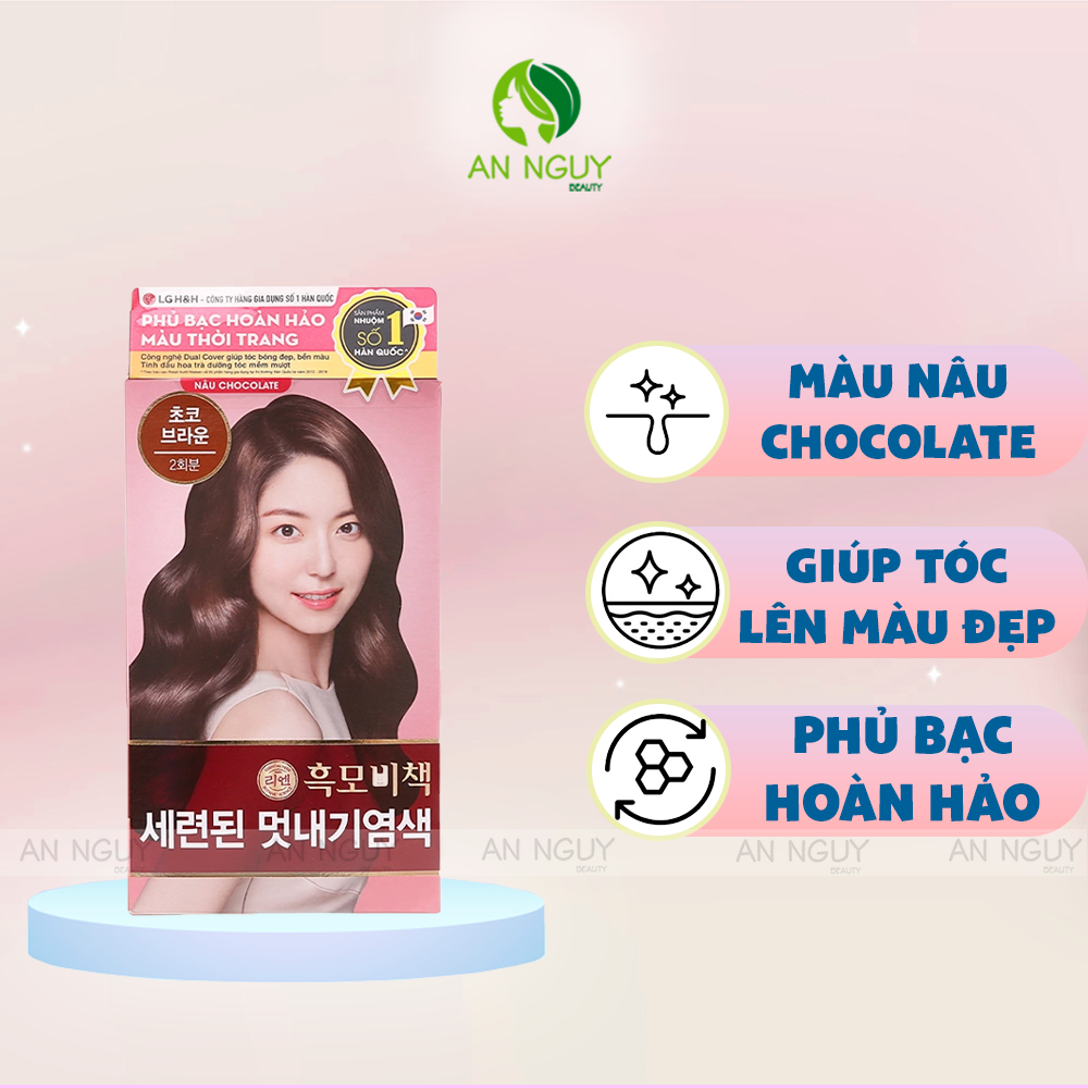 - Thuốc nhuộm tóc giúp tóc lên màu đẹp, giảm rụng tóc, cho bạn mái tóc đẹp. Kem nhuộm tóc Re-En phủ bạc màu nâu chocolate hộp 2 gói 128g giúp tóc có màu nâu chocolate đẹp, tạm biệt mái tóc bạc giúp bạn tự tin.