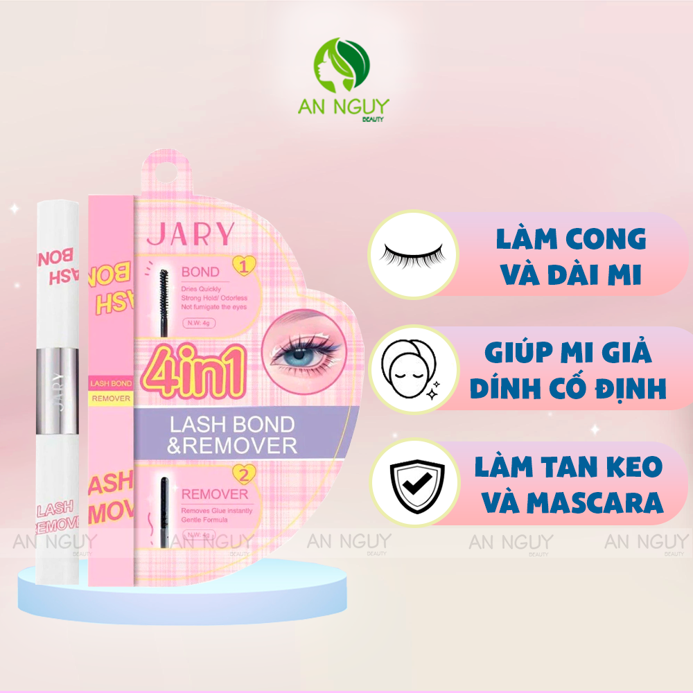 - Keo Dán Mi 2 Đầu Jary 4in1 Lash Bond & Remover là sản phẩm tiện lợi với thiết kế độc đáo, tích hợp keo dán và dung dịch tẩy trang mi trong một sản phẩm.