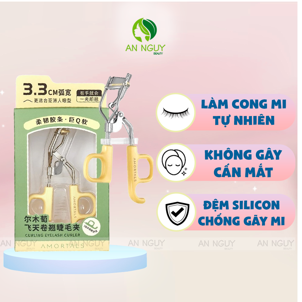 - Kẹp Bấm Mi Amortals Curling Eyelash Curler được làm bằng thép không gỉ tạo và giữ nếp mi cong lâu