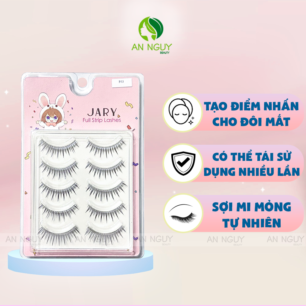 - Lông Mi Giả Jary Full Strip Lashes sử dụng chất liệu cao cấp, mang đến hàng mi dày, dài và cong vút mà không làm nặng mắt.