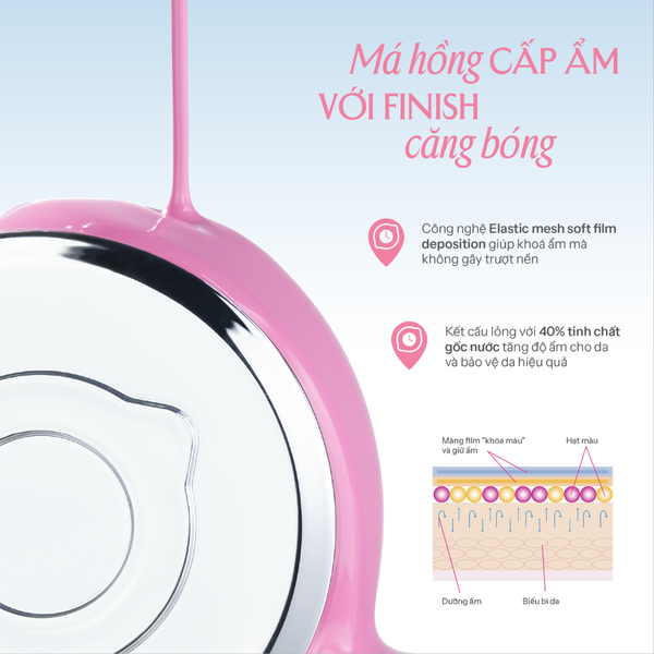 chắc trên da, không trôi - không lem - không nặng mặt, giữ màu má trên da suốt 8 giờ