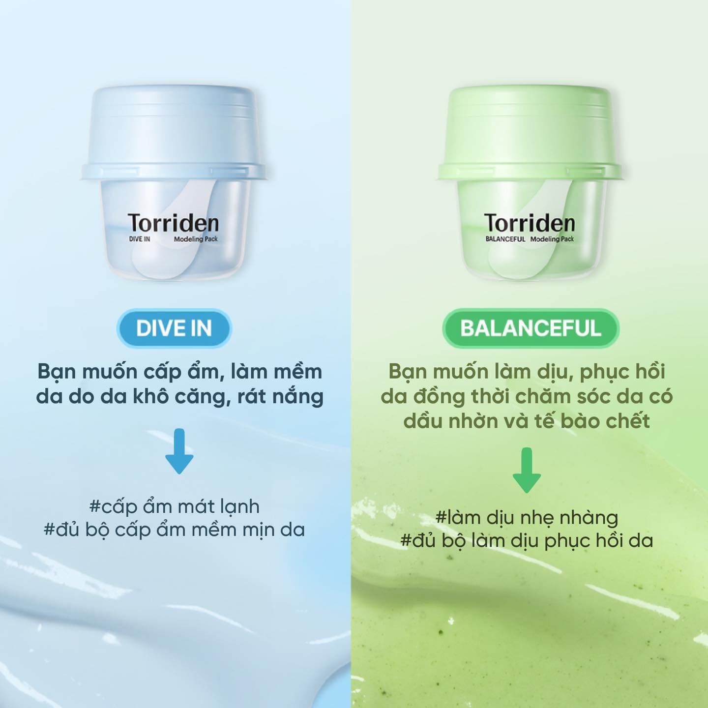 - Mặt Nạ Dẻo Torriden Balanceful Modeling Pack là mặt nạ dạng thạch dẻo tự trộn tại nhà, cho hiệu quả làm dịu, nuôi dưỡng và thư giãn da y như trải nghiệm tại spa.