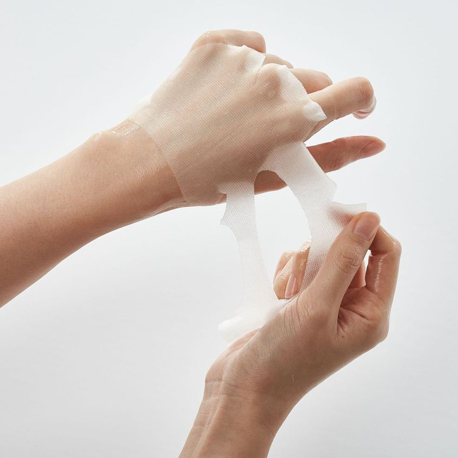 - Mặt nạ được làm từ được làm từ sợi bông 100% và vải Tencel (một loại vải sinh học cao cấp rất an toàn với da) giúp giảm thiểu kích ứng da. Chất vải mỏng và linh hoạt cho phép mặt nạ ôm khít khuôn mặt, giúp da hấp thụ tốt dưỡng chất.