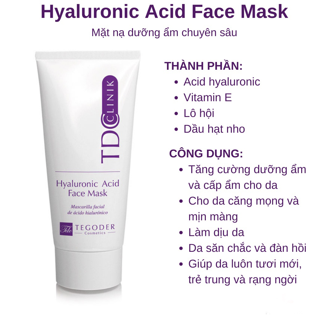 Hyaluronic Acid Face Mask là mặt nạ đất sét có dạng kem đặc, màu trắng đục, nhưng có kết cấu mềm mịn, không tạo cảm giác vón hay bết dính khi sử dụng.