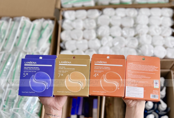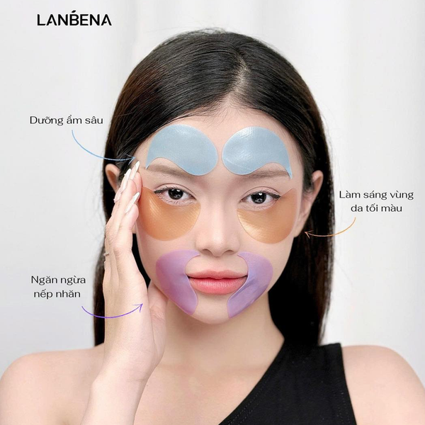 - Mặt Nạ Mắt Lanbena Hydra Gel Eye Patches chứa các thành phần như Hyaluronic Acid, Retinol và Vitamin C giúp giải quyết mọi vấn đề về vùng da quanh mắt như nếp nhăn, lão hóa, quầng thâm, bọng mắt và tối màu.