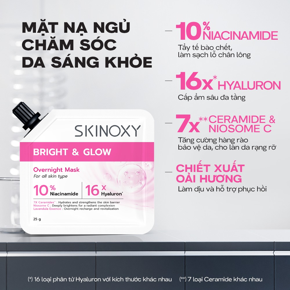 Mặt Nạ Ngủ Skinoxy Overnight Mask Dưỡng Ẩm Giúp Da Mềm Mịn là sản phẩm mặt nạ ngủ dưỡng ẩm chuyên sâu, được thiết kế để chăm sóc da giúp da mềm mịn, ẩm mượt và cân bằng sau một đêm ngủ.