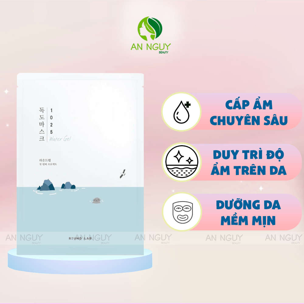 - Mặt Nạ Round Lab 1025 Dokdo Hydrating Water Gel Mask Cấp Ẩm, Làm Dịu Da là mặt nạ gel đậm đặc với khả năng cấp ẩm mạnh mẽ từ khoáng chất nước biển sâu, giúp da căng mướt, mịn màng.