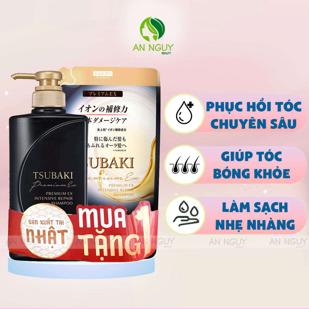 - Dầu Gội Tsubaki Premium Ex Intensive Repair Shampoo là dầu gội với công thức bổ sung Ion phục hồi cùng thành phần thiên nhiên cao cấp như dầu hoa trà, sữa ong chúa, protein đậu nành giúp nuôi dưỡng và tái cấu trúc từng sợi tóc hư tổn do Uốn - Duỗi - Tẩy - Nhuộm.