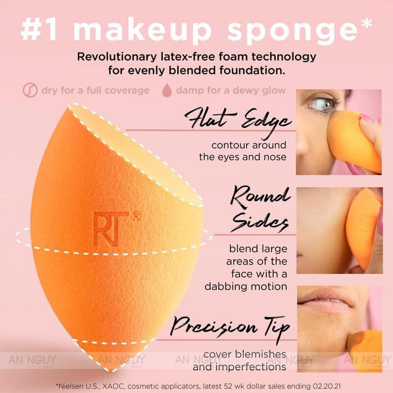 - Mút Tán Kem Nền Real Techniques Base Miracle Complexion Sponge được làm từ chất liệu có độ xốp đặc biệt và mềm mại giúp tạo nên lớp nền và lớp phủ mịn màng thật đều màu và tự nhiên