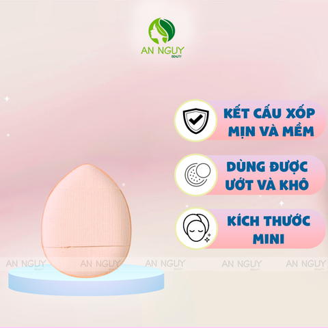 Mút Trang Điểm Tán Nền Che Khuyết Điểm Đa Năng với thiết kế cực kỳ nhỏ gọn chỉ vừa bằng ngón tay, kiểu dáng hình giọt nước có thể dễ dàng tán kem ở những nơi khó như cánh mũi.