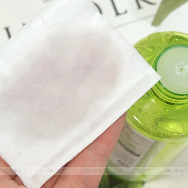 - Cho toner ra bông tẩy trang rồi thấm nhẹ nhàng lên da theo vùng chữ T. Hoặc bạn có thể đổ ra lòng bàn tay rồi thoa đều lên mặt.