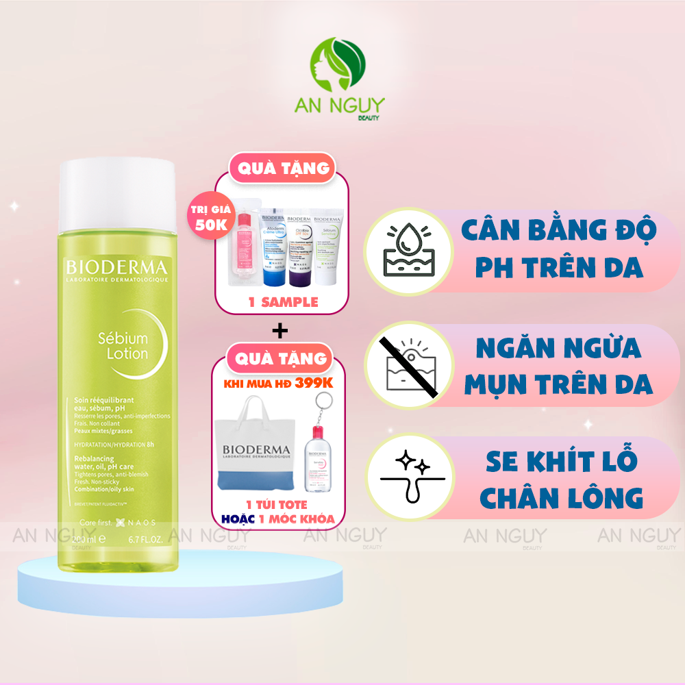 - Nước Cân Bằng Cho Da Dầu Hỗn Hợp Bioderma Sébium Lotion 200ml là một trong những sản phẩm nổi bật của hãng có cơ chế hoạt động tăng kích thích sự cân bằng độ pH, tuyến bã nhờn và độ ẩm sâu cho da, từ đó ngăn ngừa bít tắc lỗ chân lông, giảm sự hình thành mụn cho da sáng khỏe