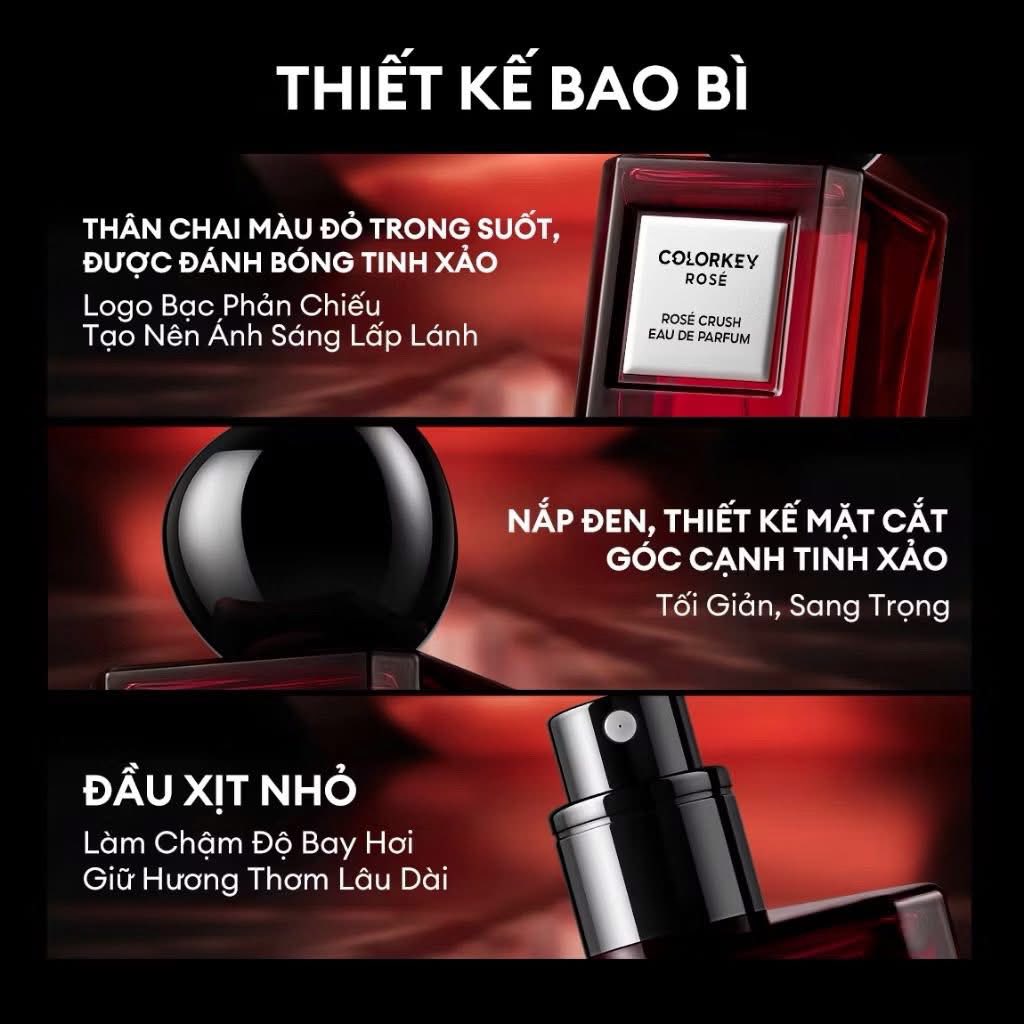 - Nước Hoa Colorkey Rosé Rosé Crush Eau De Parfum mang lại hương thơm ngọt của hoa và trái cây như những cánh đồng hoa đung đưa theo gió, cảm giác tự do, thư thái và tràn đầy hy vọng.
