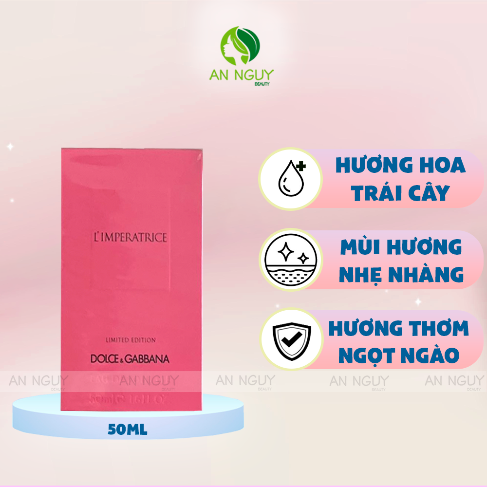 Nằm trong bộ sưu tập L’Imperatrice, nước hoa DG L’Imperatrice Limited Edition là phiên bản nước hoa giới hạn được thương hiệu Dolce & Gabbana. Phiên bản giới hạn lần này được cải tiến thêm về các thành phần hương thơm, ngoài ra vẫn giữ lại các yếu tố chính của thành phần ban đầu như dưa hấu và cây anh thảo, với điểm nhấn là hoa hồng Damask và hoa mẫu đơn hồng thay thế hoa nhài.