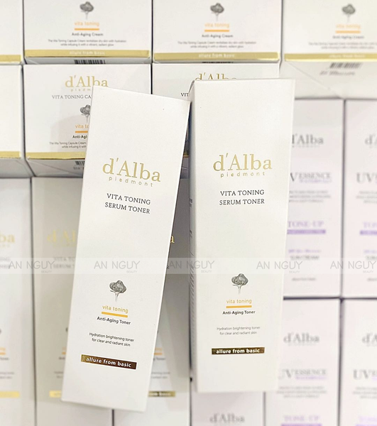 - Nước Hoa Hồng d'Alba Vita Toning Serum Toner một sản phẩm đa năng, kết hợp tinh túy của toner và serum, mang lại hiệu quả dưỡng ẩm, làm sáng và chống lão hóa vượt trội.