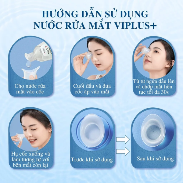 - Rửa thật sạch cốc rửa mắt trước và sau khi sử dụng (Khuyến khích nên làm khô nước còn lại trong cốc tự nhiên)