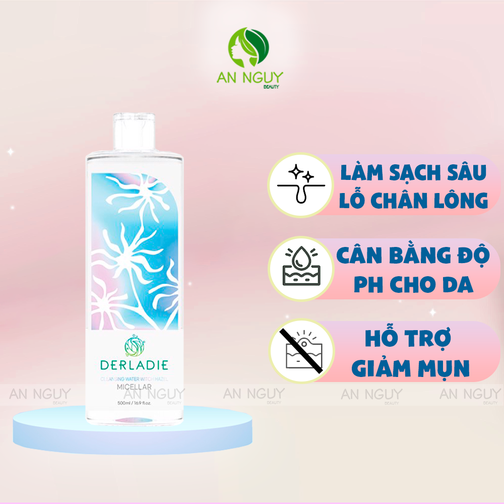 - Nước Tẩy Trang Chiết Xuất Cây Phỉ DERLADIE Cleansing Water Witch Hazel là sản phẩm làm sạch da đến từ thương hiệu Derladie nổi tiếng với các dòng sản phẩm chiết xuất cây Phỉ, giúp làm sạch lớp trang điểm nhanh chóng, loại bỏ dầu thừa và bụi bẩn, đồng thời hỗ trợ se khít lỗ chân lông, mang lại cho bạn làn da sạch thoáng mịn màng.