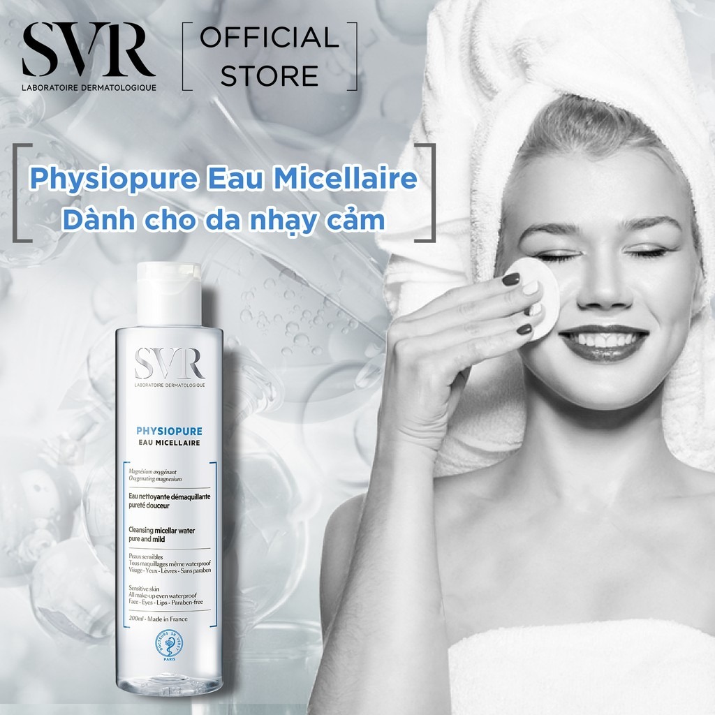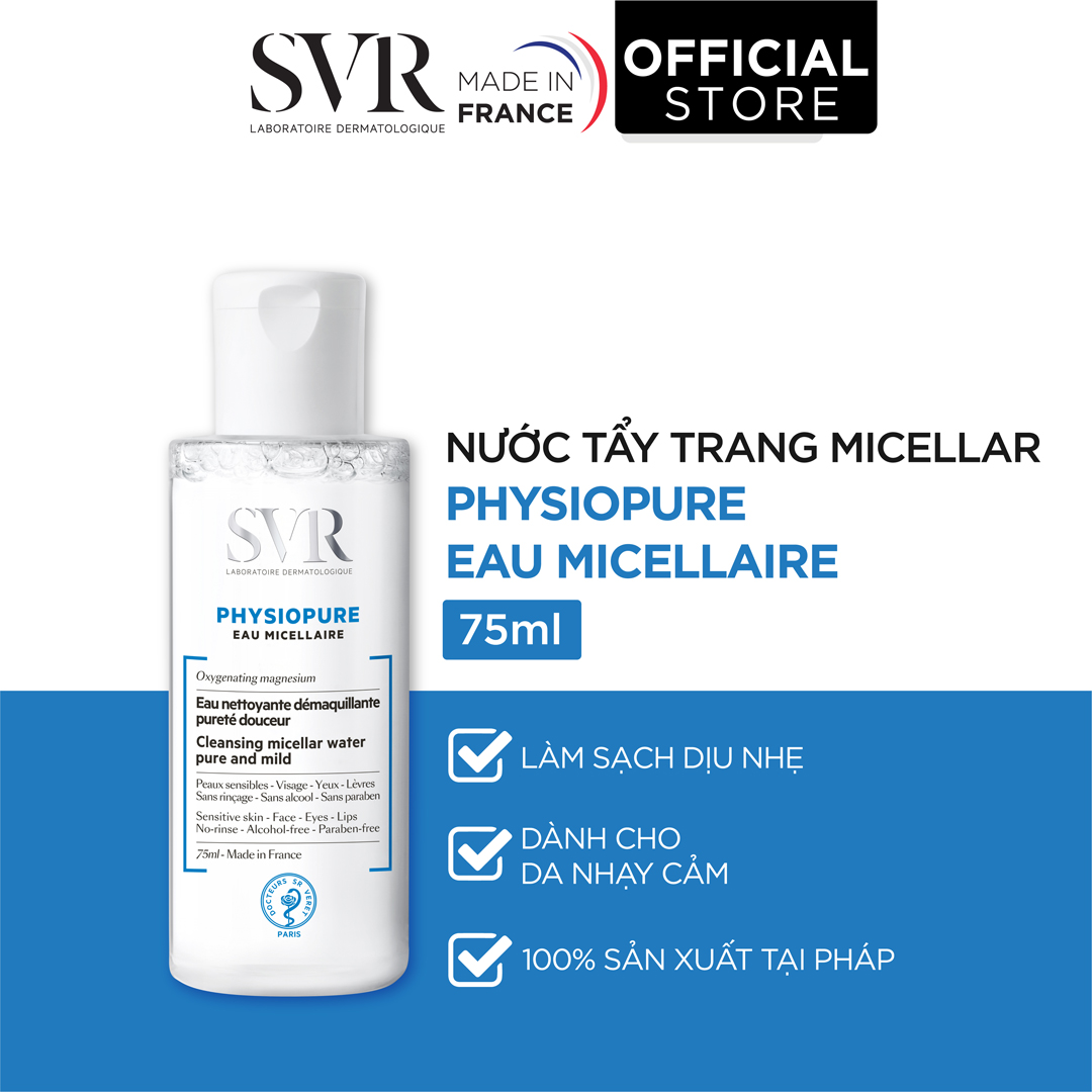 – Nước Tẩy Trang Cho Da Nhạy Cảm SVR PHYSIOPURE Eau Micellaire là sản phẩm đến từ thương hiệu SVR của Pháp giúp tẩy trang vô cùng tiện dụng. Chỉ với một vài thao tác đơn giản, các chất bẩn và lớp trang điểm sẽ được lấy đi, mang lại cho bạn một làn da sạch sẽ và thông thoáng.