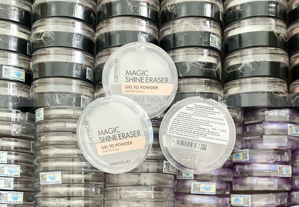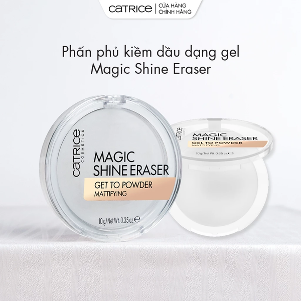 - Phấn Phủ Catrice Magic Shine Eraser Gel To Powder là giải pháp kiềm dầu tức thì dành cho làn da dầu và hỗn hợp. Sản phẩm có kết cấu gel trong suốt, khi tán trên da sẽ chuyển sang dạng phấn mịn (gel-to-powder), giúp làm mờ lỗ chân lông, giảm bóng dầu và giữ lớp nền ổn định suốt nhiều giờ.