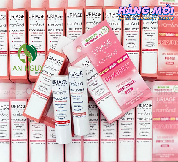 - Son Dưỡng Có Màu Uriage & Romand Uriajuicy Stick Lèvres Colored là sự kết hợp của 2 thương hiệu Uriage và Romand, về giữ ẩm cho môi dòng Uriage nổi tiếng dưỡng mềm môi suốt cả ngày cùng với lên màu tự nhiên, tươi tắn nhờ công nghệ màu chuẩn từ Romand.