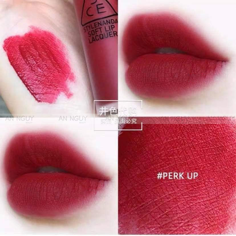 #Perk Up - Đỏ Hồng Trầm: tông đỏ kết hợp cùng màu hồng trầm ấm tạo nên sắc son nổi bật, khá bắt mắt, dễ dùng cho mọi tông màu da