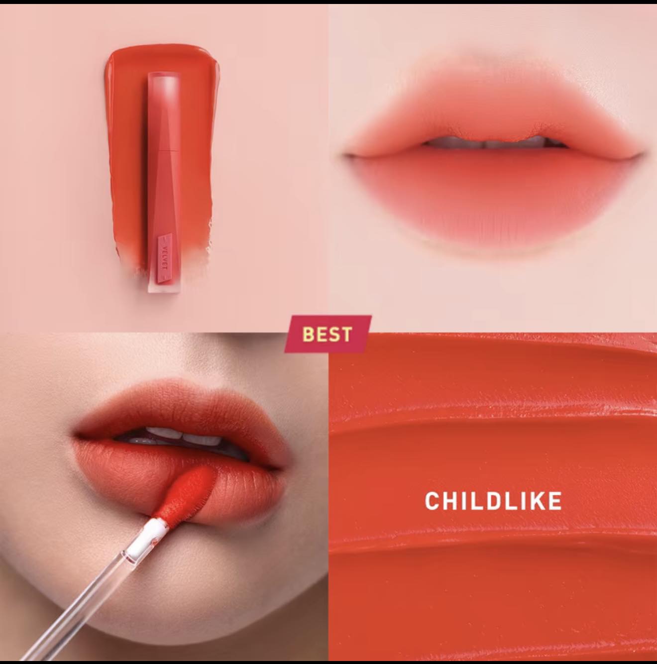 - Chất son lì mịn như nhung, lên môi nhẹ tênh mà vẫn mềm mượt suốt ngày dài – không lo khô môi hay lộ vân môi
