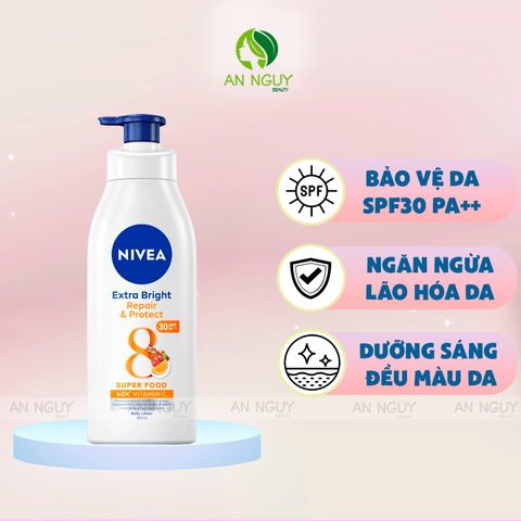 - Sữa Dưỡng Thể Chống Nắng Nivea Extra Bright Repair & Protect Body Lotion SPF30 PA++ là dòng sữa dưỡng thể làm sáng da toàn thân nổi tiếng của thương hiệu NIVEA