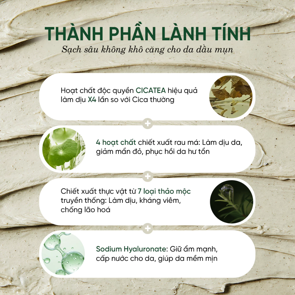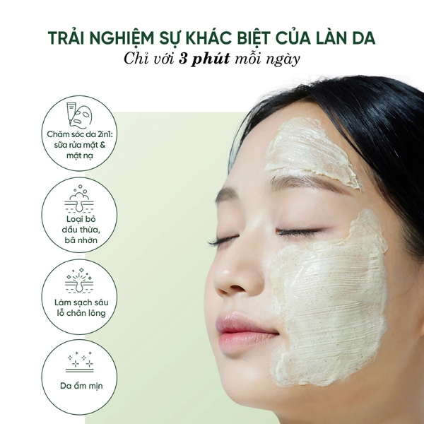 - Kết cấu dạng kem kết hợp hạt scrub bột trà xanh giúp tẩy tế bào chết.