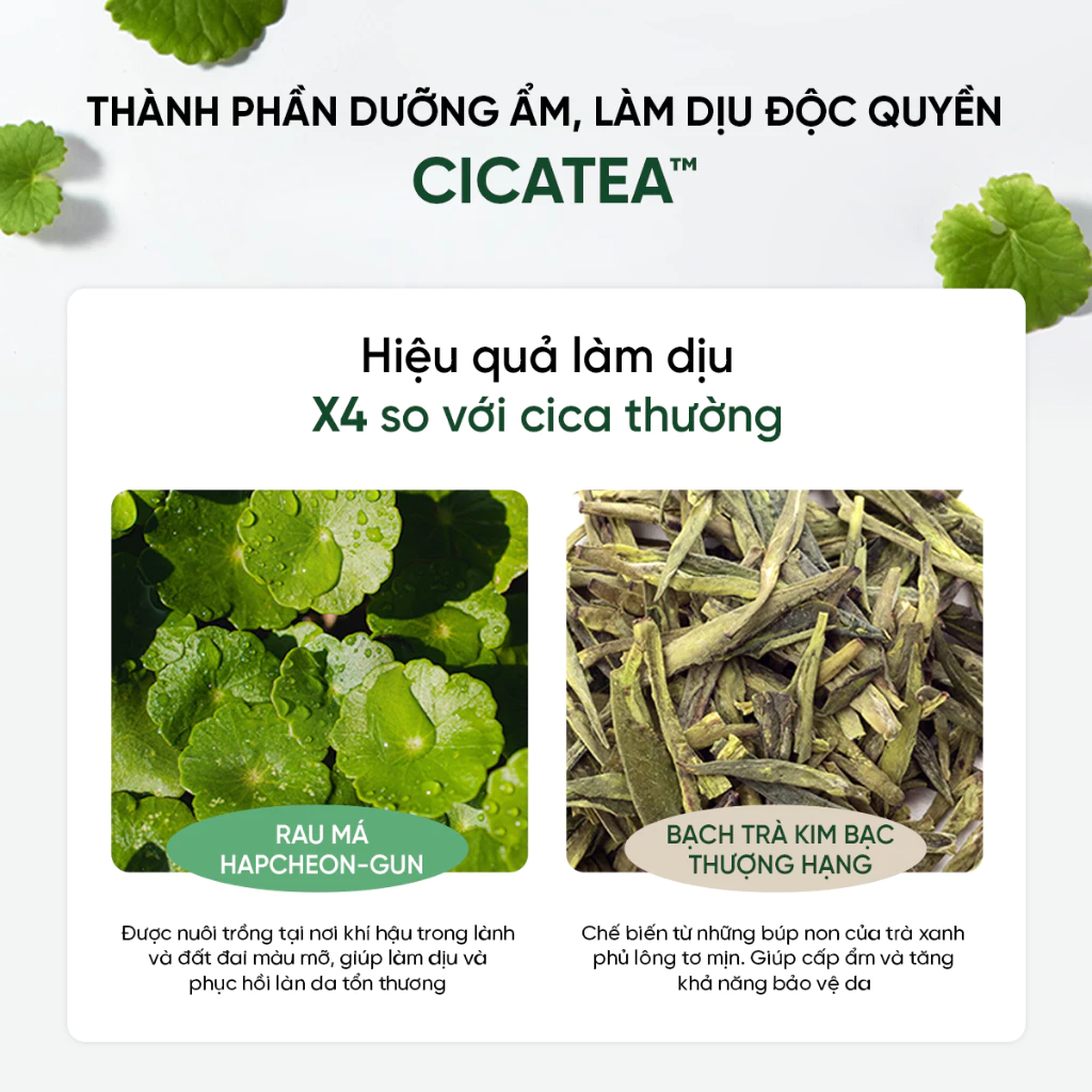 - Sữa Rửa Mặt 2 In 1 Dewdap Cicatea Pore & Sebum Pack Cleanser chứa hoạt chất độc quyền CICATEA cùng 4 hoạt chất chiết xuất cica làm dịu da, giảm mẩn đỏ, phục hồi da hư tổn, tăng hiệu quả làm dịu da.