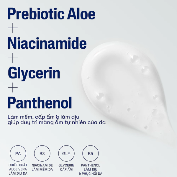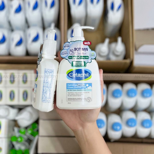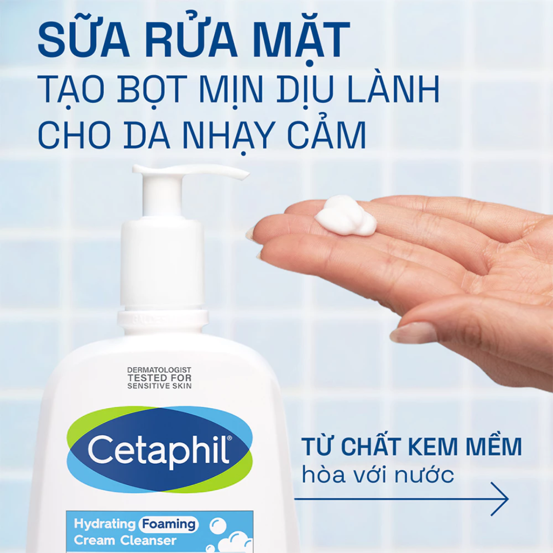 - Cetaphil Hydrating Foaming Cream Cleanser với sự kết hợp 3 hoạt chất lành tính Niacinamide (Vitamin B3), Panthenol (Pro-vitamin B5) và Glycerin giúp kích thích da sản sinh 15 Ceramides tự nhiên giúp cải thiện khả năng phục hồi của làn da nhạy cảm.