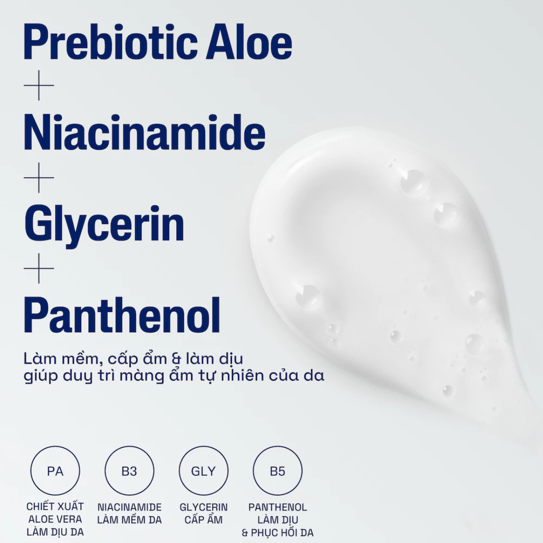 - Sản phẩm nổi bật với 5 KHÔNG: Không xà phòng, không paraben, không sulfate, không hương liệu, không dầu khoáng an toàn cho làn da nhạy cảm.