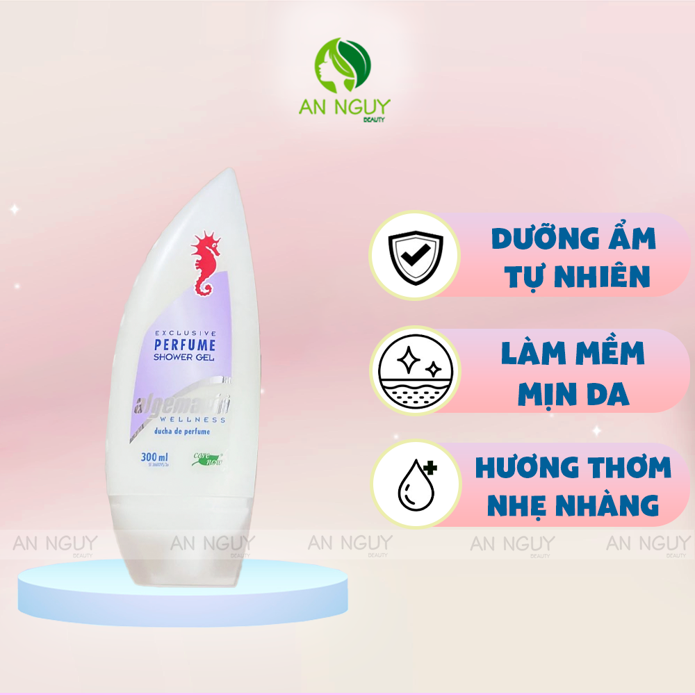 Sữa Tắm Cá Ngựa Algemarin có chiết xuất từ các loài hoa và vitamin thiên nhiên, cung cấp dưỡng chất thiết yếu mỗi ngày cho da luôn mềm mại, căng mịn. Khả năng dưỡng ẩm sâu và lâu dài cả ngày dài, giúp bạn tránh khỏi hiện tượng khô da, nứt nẻ hay bong tróc khó chịu. Sản phẩm có liên kết chặt lưu giữ được hương thơm trên cơ thể cả ngày, hạn chế cơ thể đổ mồ hôi hay gây mùi khó chịu, diệt khuẩn tốt.