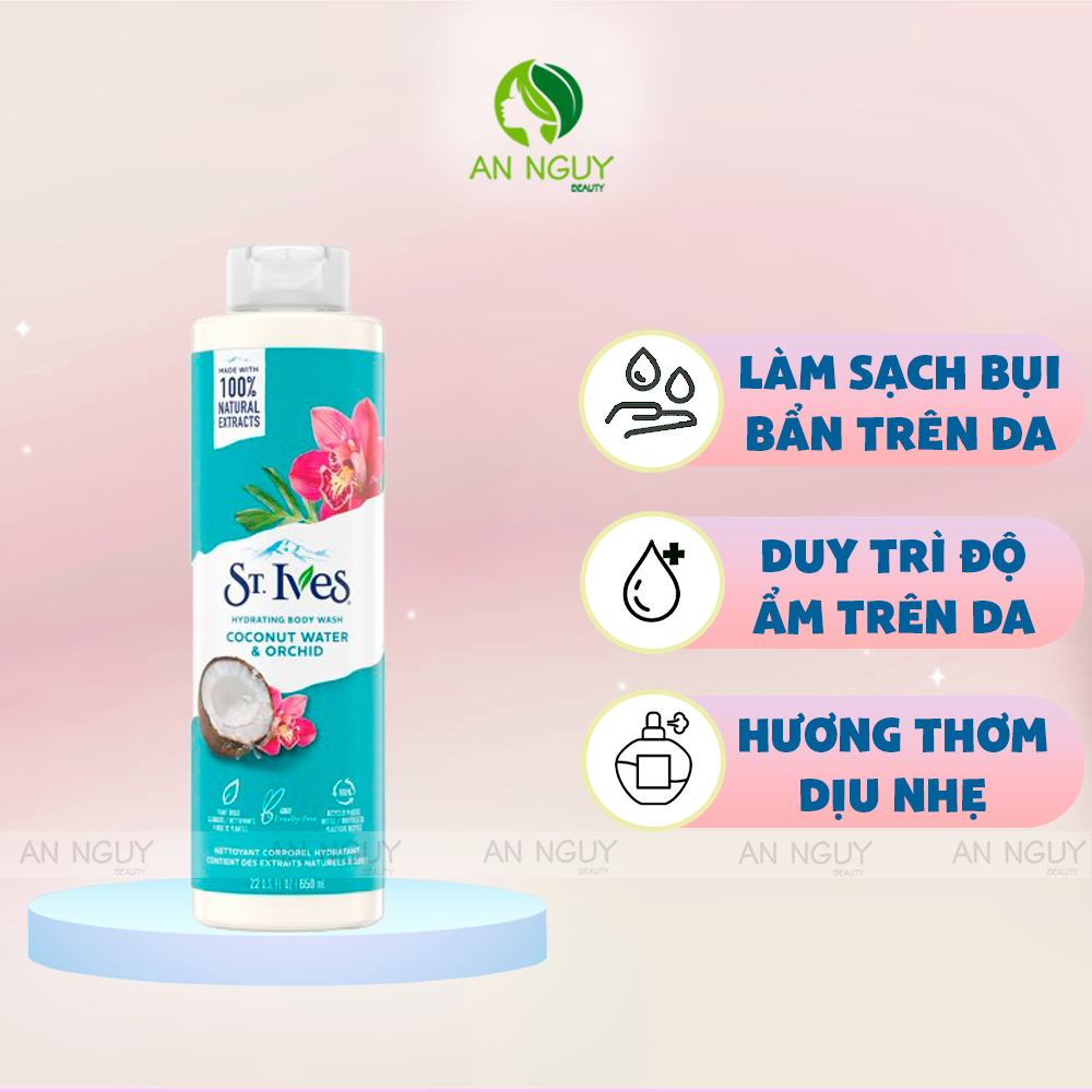 #St.Ives Coconut Water and Orchid Hydrating Body Wash - chiết xuất từ tinh chất sữa dừa và hoa lan mang lại cảm giác thư giãn thoải mái cho người dùng đặc biệt hỗ trợ cấp ẩm da tự nhiên rất tốt
